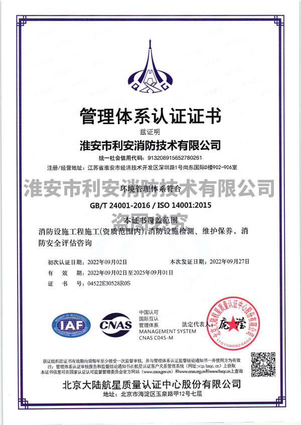 您好,欢迎访问淮安市利安消防技术有限公司官方网站!